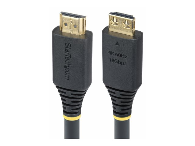 StarTech.com HDMI2-CABLE-GRIP-7M är utformad för lång livslängd och hög prestanda, vilket gör den till ett utmärkt val för anslutning av skärmar, monitorer och TV-apparater. Denna höghastighets-HDMI-kabel har en robust diameter på 6 mm och är tillverkad med aluminiummylarfolieskydd, vilket garanterar skydd mot elektromagnetisk störning (EMI). Med en dragavlastningsfunktion och greppande kontakter ger kabeln en säker passform för tillförlitliga anslutningar. Den stöder en datahastighet på 18 Gbps, vilket möjliggör videoupplösningar upp till 4K vid 60 Hz och 1440p UWQHD vid 144 Hz, tillsammans med stöd för Dolby TrueHD- och Dolby Atmos-ljudformat. Med en livslängd på upp till 10 000 anslutningar och 2 000 böjningar är denna kabel konstruerad för att tåla frekvent användning samtidigt som prestandan bibehålls.